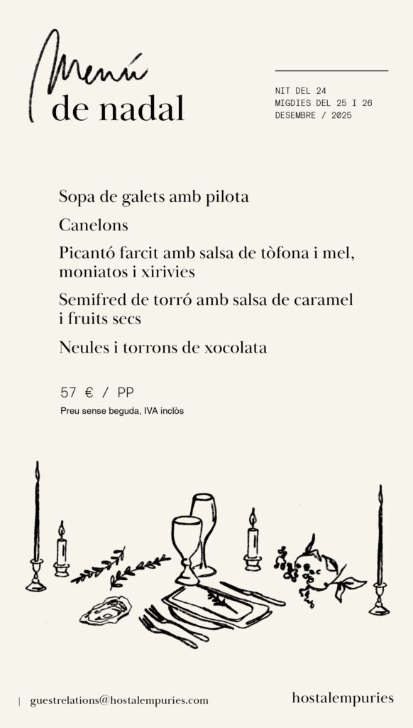 En l’Hostal Empúries tornem a apostar per la cuina mediterrània per a celebrar aquestes festes. Per això, us presentem els nostres menús especials per a Nadal i Cap d’any 2025, creats per a degustar la tradició i la creativitat amb productes de temporada.